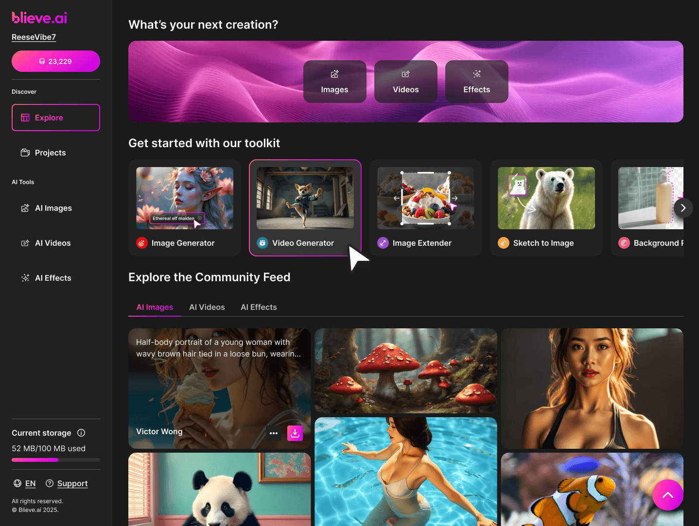 Convierte ideas en visuales impresionantes usando las poderosas herramientas creativas de blieve.ai. Ya sea arte, fotos o diseño. Tú creas, nosotros elevamos.